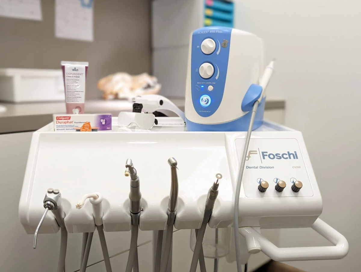 Unsere Praxis verfügt über eine hochmoderne chirurgische Infrastruktur, die speziell für weichteilchirurgische Eingriffe konzipiert wurde. Zu unserer Ausstattung gehören ein fortschrittliches Inhalationsnarkosegerät sowie ein Überwachungssystem inklusive EKG, das eigens für den Einsatz in der Tiermedizin entwickelt wurde. Auch in der Zahnheilkunde setzen wir auf Qualität und Sicherheit. Aus diesen Gründen haben wir einen speziell ausgestatteten Dentalbehandlungsraum mit modernster Technik, Inhalationsnarkosegerät, Narkoseüberwachungssystem und eine Dentaleinheit mit Ultraschallreinigungsgerät eingerichtet. Bei uns werden zahnärztliche Behandlungen und chirurgische Eingriffe strikt getrennt, um eine Kreuzkontamination zu vermeiden.